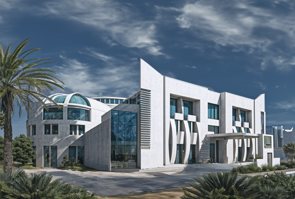 The ASC Headquarters Building in the Kuwait Free Trade Zone for a private client is designed with a focus on security, functionality, and access. Project size: 10,000 m2 + 1,500 m2 car park + 6,000 m2 total built-up.